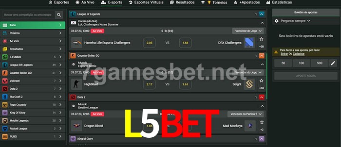 O L5Bet oferece uma grande seleção de opções de apostas em e-sports com probabilidades competitivas